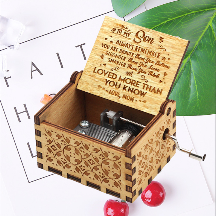 - This is a beautiful wooden music box with a meaningful message engraved from the inside of the box.