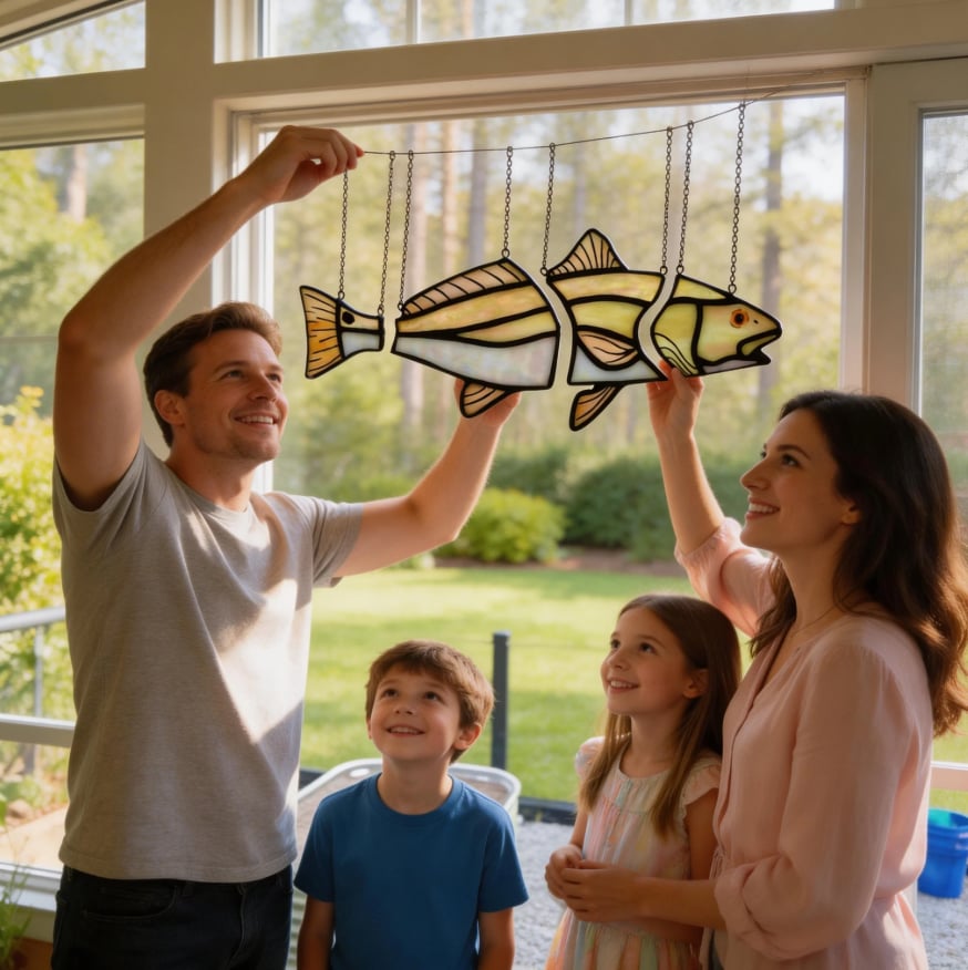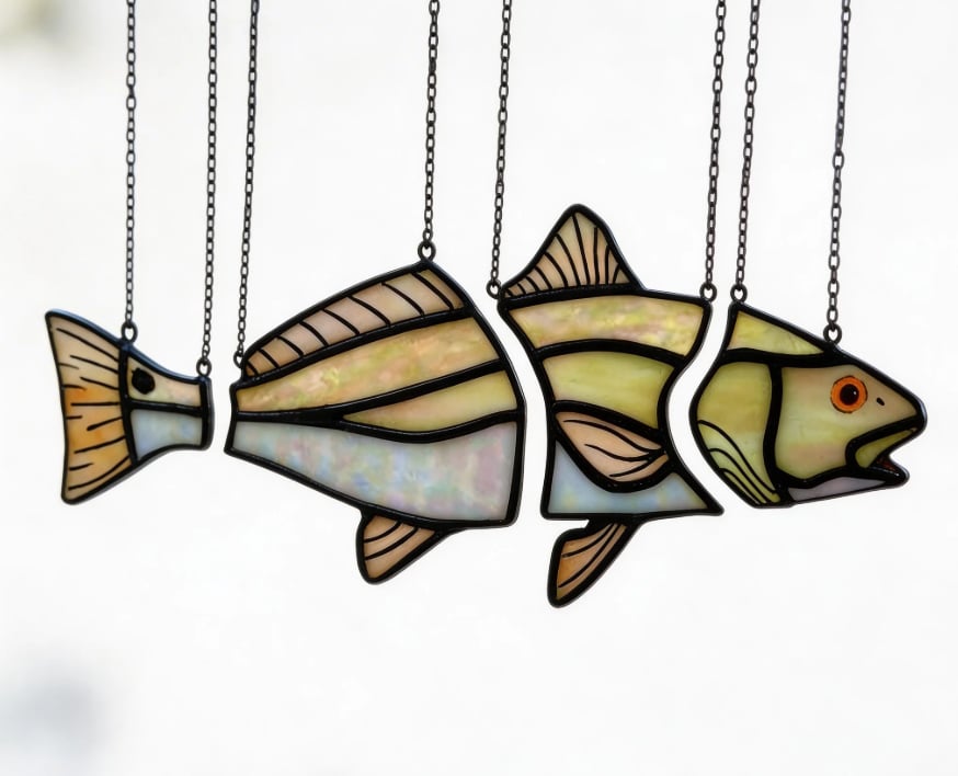 ✨ Premium Stained Glass Craftsmanship: Made with iridescent neutral-toned stained glass in natural textures, with hand-painted details for realistic fish features.